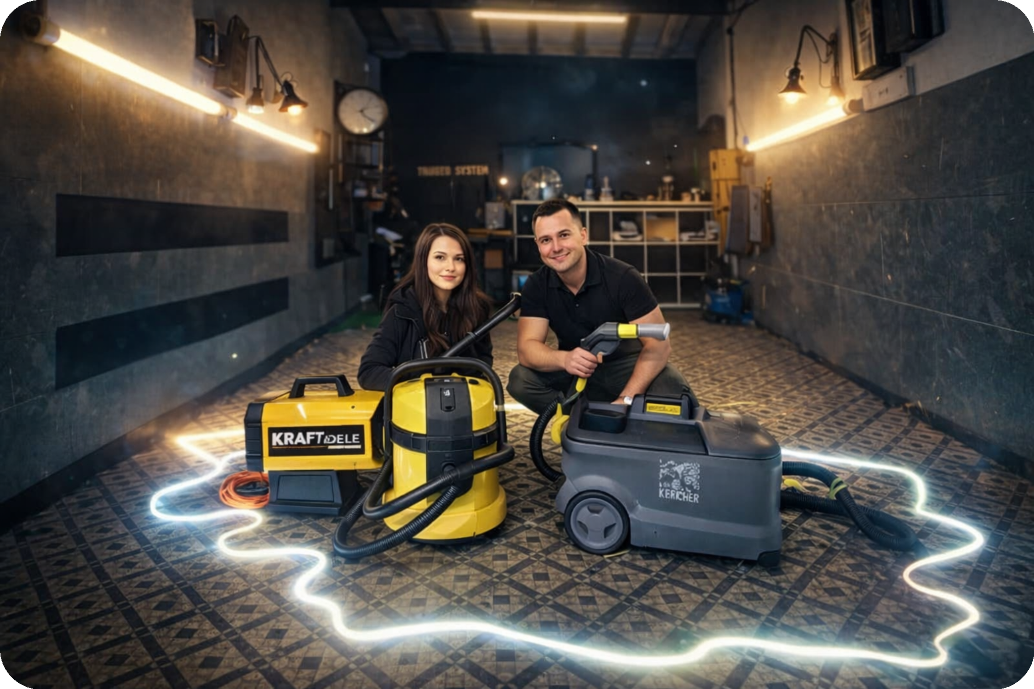 - Odkurzanie: dywaników, wykładziny i bagażnika wkrętarką ze specjalną końcówką i kompresorem